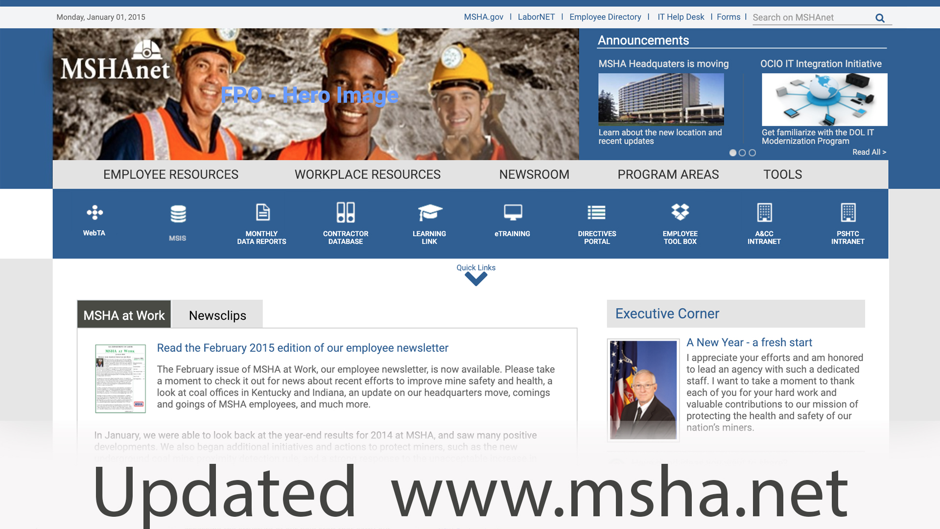 MSHA public facing website and intranet turned out in a way that they and we are proud of. Check it out