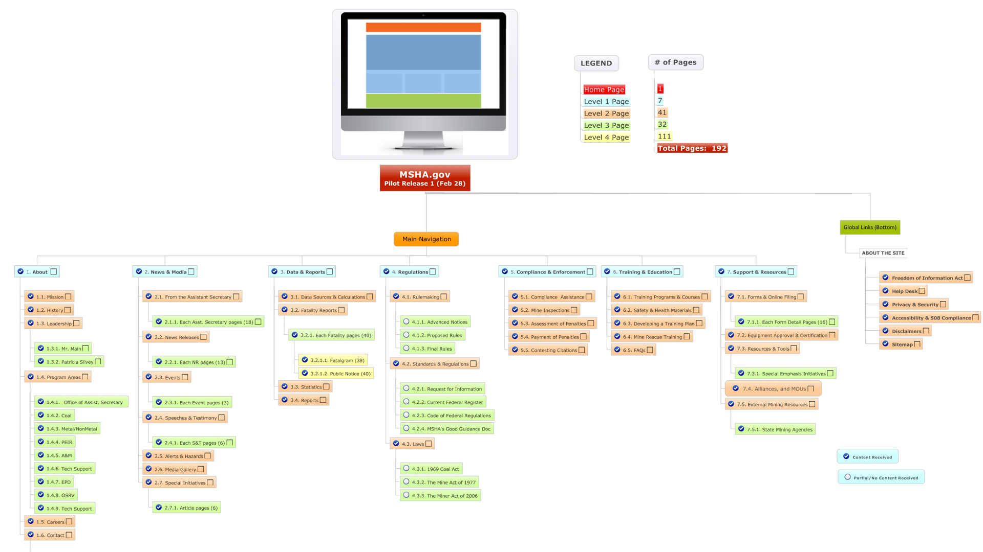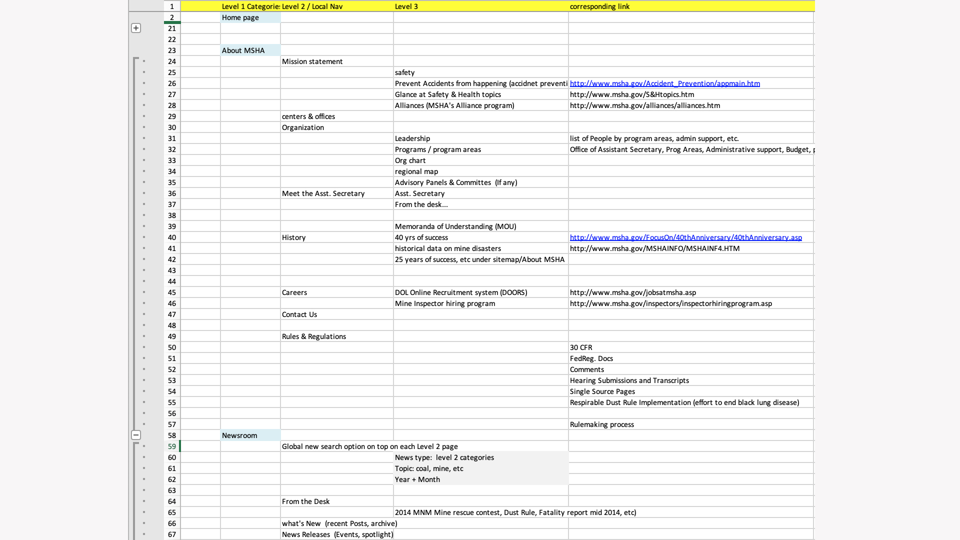 Over 700 pages were developed over the period of couple of decades. There were many issues - outdated content, pages were inconsistently designed, redundant and broken links throughout the site, pages were taking forever to load and many more. Biggest complaint from end users were they can not find they were looking for. For instance fatality information, which the law requires MSHA to report any violation, accident, and inspection data on the website. These information were buried inside that requires lot of clicks and hence it was leading lot of user frustrations.