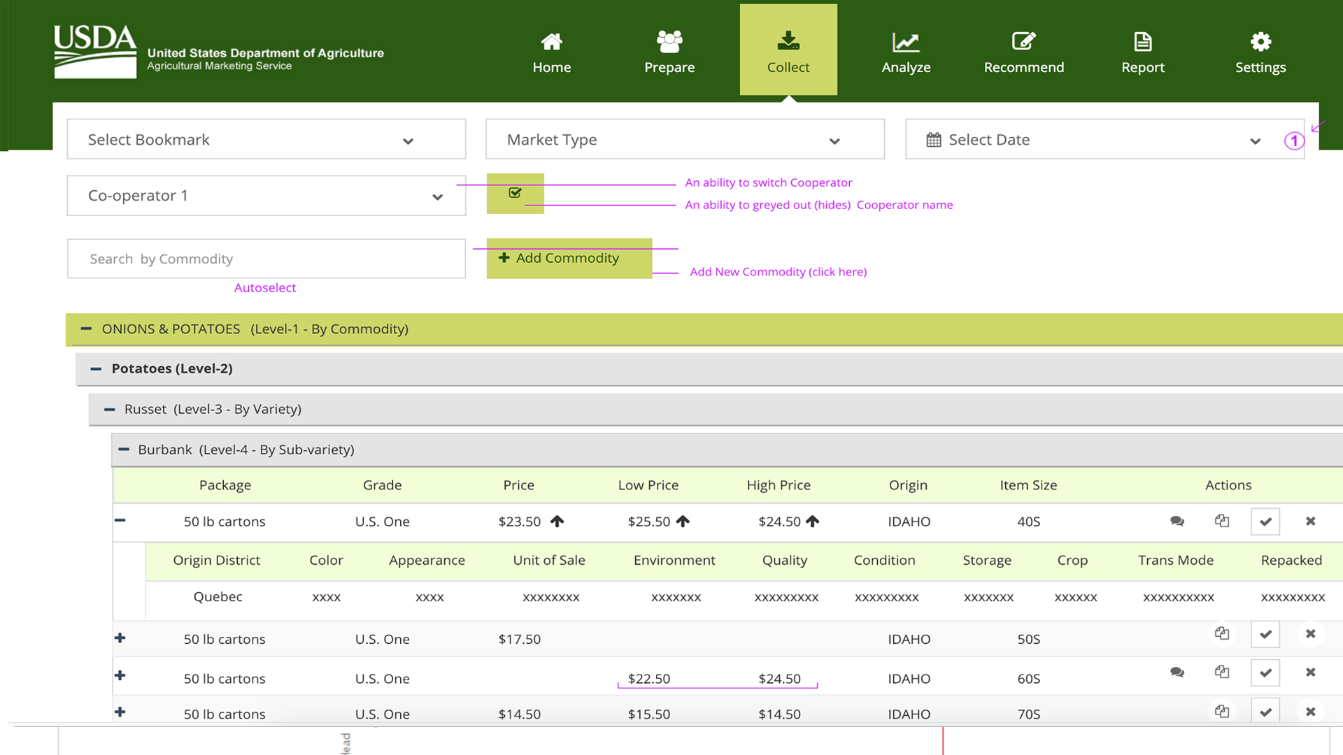 ((USDA) Agricultural Marketing Service (AMS) would like to develop the Market Analysis & Reporting Services (MARS), data platform to deliver market price information to the commodities industry, around the globe. USDA Market News provides timely, and accurate market information of hundreds of agricultural commodities and their related products, which data gives a representative picture of commodity markets and promotes market transparency.